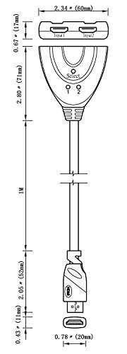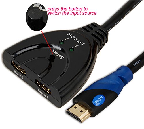 A-tech Sl2103pt1m Is a 2 Port HDMI Switch2×1 with 3ft HDMI Pigtail Cable in ABS Black.with This HDMI Switcher You Can Connect Dvd/stb or Other Two Input Sources to One Display (Hdtv/projector/computer Monitors)