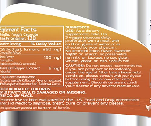 CONTAINS 5mg of BIOPERINE: Maximize absorption of Turmeric and boost it's effectiveness. Best formula on the market.