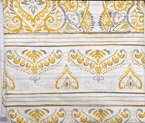 Cynthia Rowley Set of 2 Panel Curtains Yellow Gray Medallion Pattern on White Each Curtain Measures 52" x 96" 100% Cotton, Machine Washable Brand : Cynthia Rowley New York EAN : 0710465365582