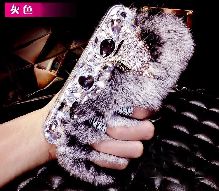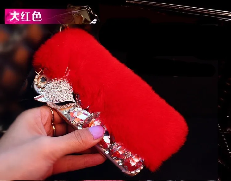 Feature four:3D Big diamond Real rabbit fur hard case for iphone 6s plus case