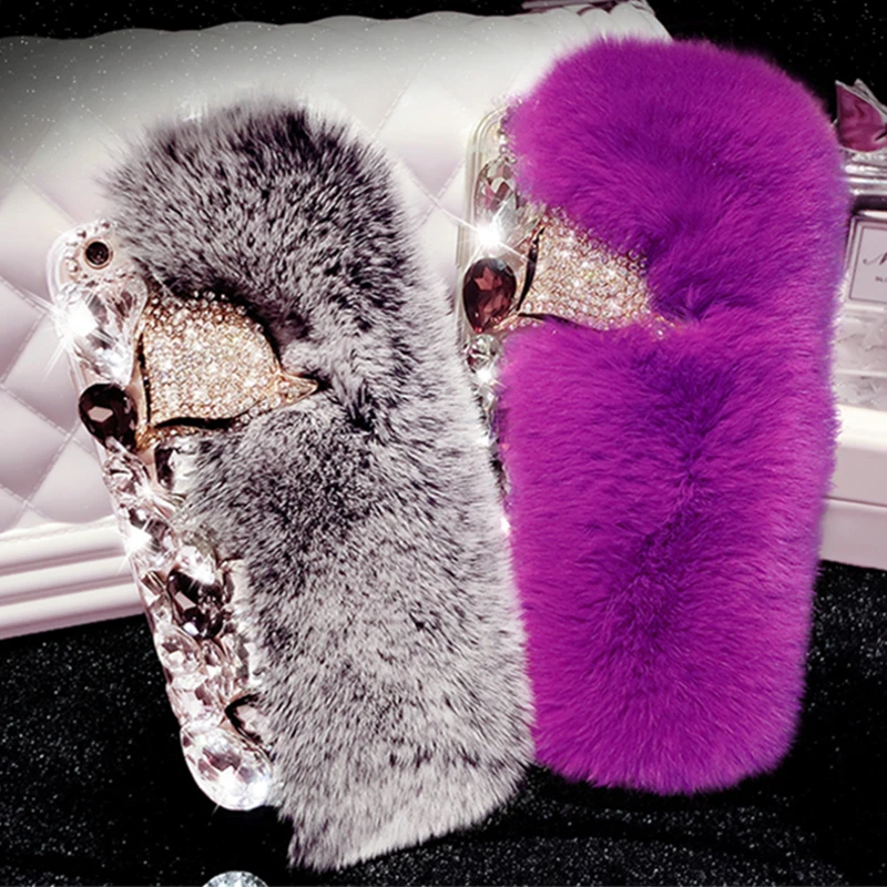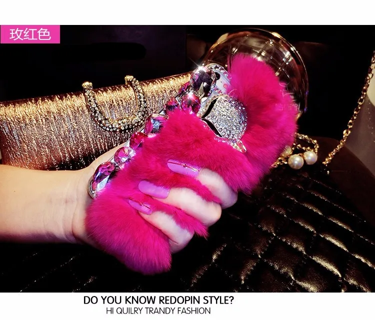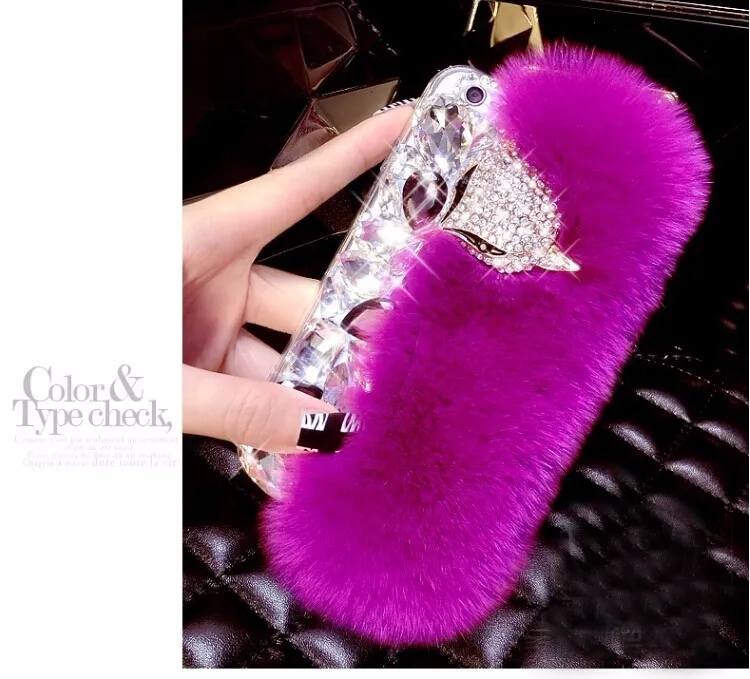 Feature one:for iphone 6s case Luxury Diamond rabbit hair fur case