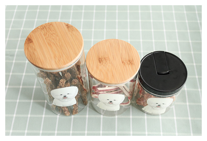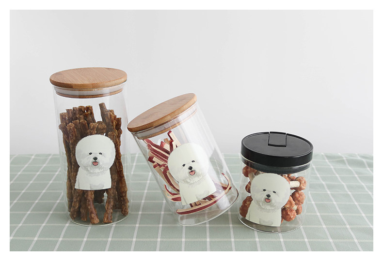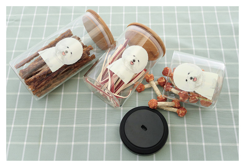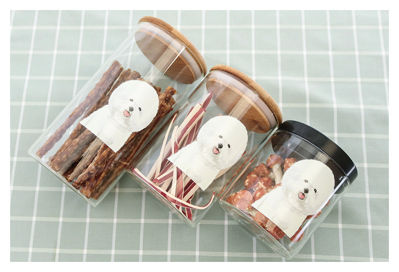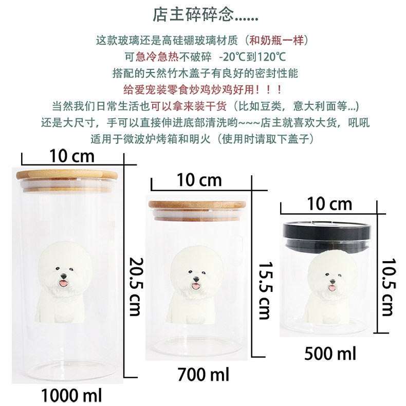 可爱比熊系列透明玻璃密封罐厨房杂粮储物罐玻璃展示瓶宠物零食罐