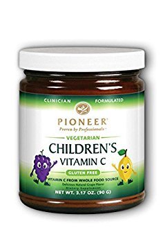 Pioneer Children's Vitamin C Powder Grape is a delicious natural grape flavored vitamin C powder for children to promote a healthy immune system. This supplement contains whole-food non-corn sources of vitamin C from Alma, lemon bioflavonoids and a fruit and vegetable blend. For children mix 1.2 teaspoon (1.5 g) in four to eight ounces of water or beverage of choice. This Vitamin C Powder is vegetarian friendly and gluten free.Feature