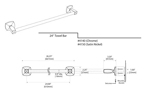 Gatco 4140 Jewel Towel Bar, Chrome, 24-Inch