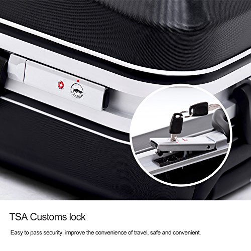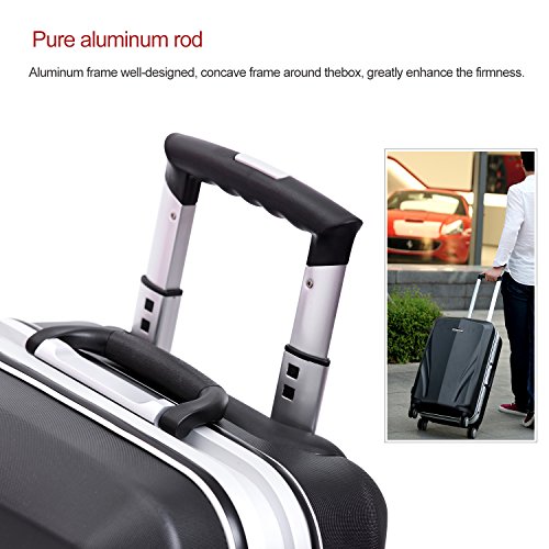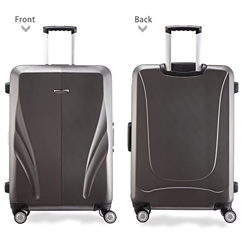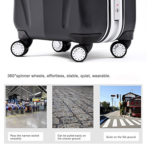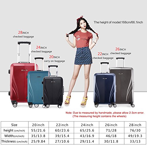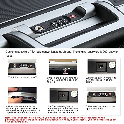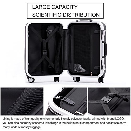 -. Feature : Polycarbonate material,durable and lighter hard shell,features textured finish to prevent against scratches,ensures long-lasting usage and safety. / Ultra light-weight construction,sturdy ergonomic aluminum telescoping handle. / 4-Wheel Spinners allow for full 360 degree mobility,for smooth-rolling mobility in any direction. / Squared full-capacity design,fully-lined interior with handy divider and zippered pocket for easy organizing. / Side mounted TSA lock,TSA lock which allows only TSA agents to inspect your bags without damaging the lock.