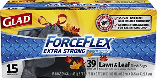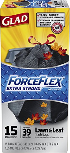 Glad ForceFlex Extra Strong Lawn and Leaf Drawstring Trash Bags - 39 Gallon - 15 Count