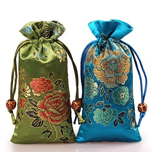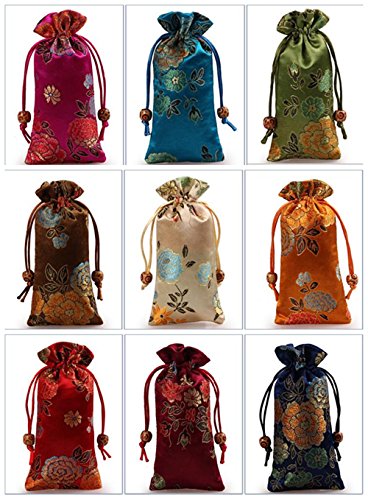- Beautiful premium embossed brocade silk fabric gift bags in multiple floral designs