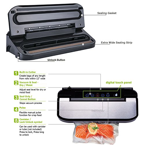Vacuum Sealer Machine, Freshlocker Stainless Steel Design Compact Automatic Vacuum Sealing System with Starter Pack of Saver Roll and Bags for Food Preservation,Silver