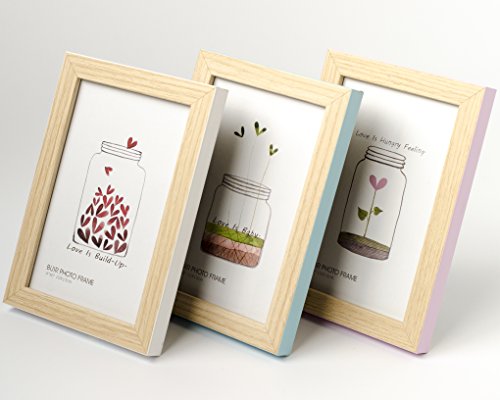 - EACH PACKAGE INCLUDES: 3 wood photo frames in the soft candy colors of blue, pink and white. Each frame is shrink wrapped separately, and well packed in a high quality white card box.