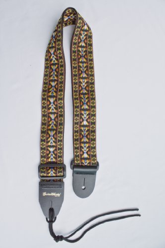 -. Title : Guitar Strap Golden Woven Nylon Solid Leather Ends Fits All Acoustic & Electric & Bass Guitars Banjos & Mandolins Quality Made In U.S.A.