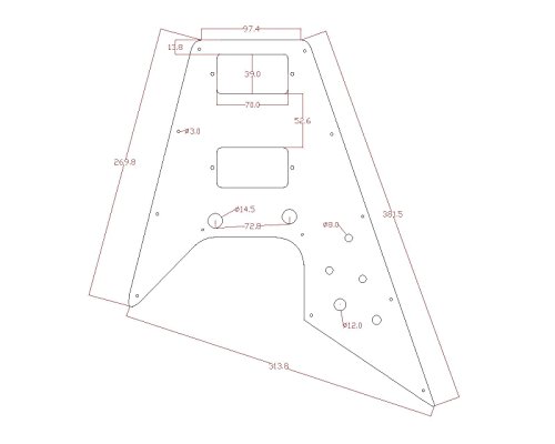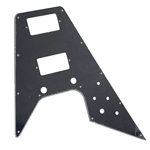 Studio : Kmise Publisher : Kmise Binding : Electronics Product Description high quality and testing is fine Item 100% like the picture shown Made of PVC 3-ply construction Color: black Anti-scratch to protect the guitar Pickguard for flying V Guitar, With 2 holes for Humbuckers 11 screw holes in the side of the pickguard package included: 1pc pickguard Scratch plate 0