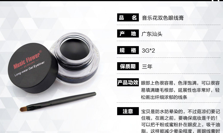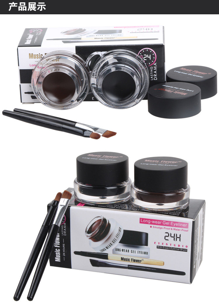 白菜价格,大牌质量,超好用的眼线膏,自用n年,两瓶装=黑色+棕色 还送2支眼线刷,很耐用哦,带两支刷子,棕色那瓶用作染眉膏效果也是杠杆的。特价包邮包邮包邮...