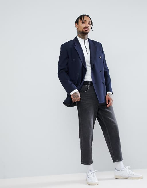 ASOS Oversized Double Breasted Blazer In Navy