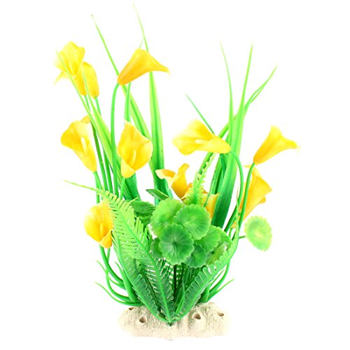 uxcell Plastic Imitated Water Plant Flower Gras Green Yellow for Aquarium