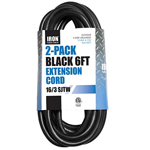 2 Pack of 6 Ft Outdoor Extension Cords - 16/3 Heavy Duty Black Extension Cord Pack