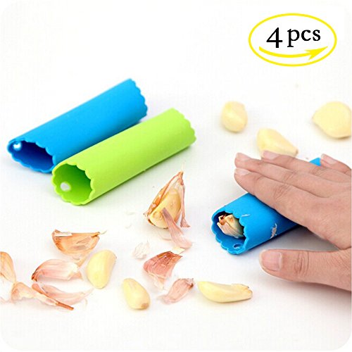 YEJI 4 Pcs Blue & Green Silicone Garlic Peeler Silicone Garlic Roller Peeling Tube Easy Useful Kitchen Tools