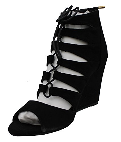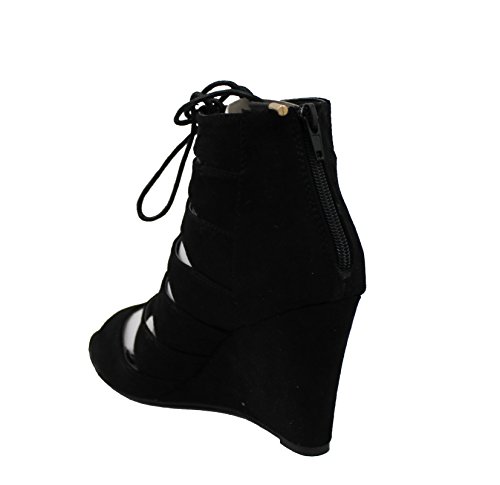 Binding : Apparel Product Description These alluring booties feature a closed toe silhouette, a side zipper, vegan suede trimming, and slim stiletto heel. Finished with lightly padded insole and side zip closure. Material: Vegan Suede (man-made) Sole: Synthetic Measurement Heel Height: 5" (approx) 0