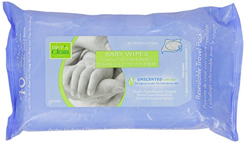Nice 'N Clean Baby Wipes with Aloe, Travel Paks, Unscented, Hypoallergenic, Case of 12/40s (480 ct)