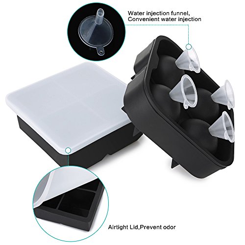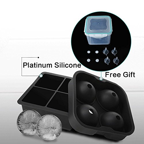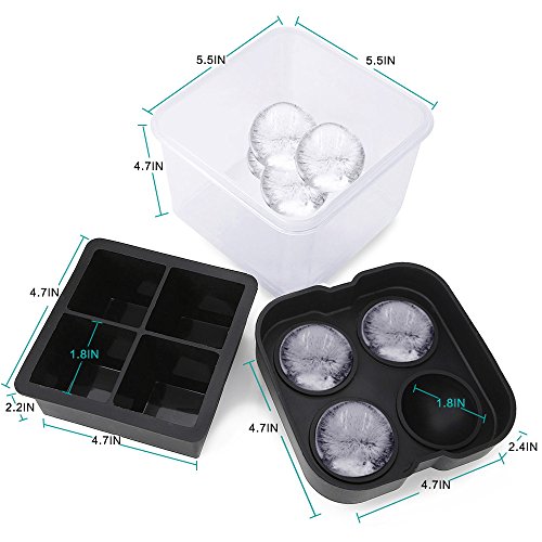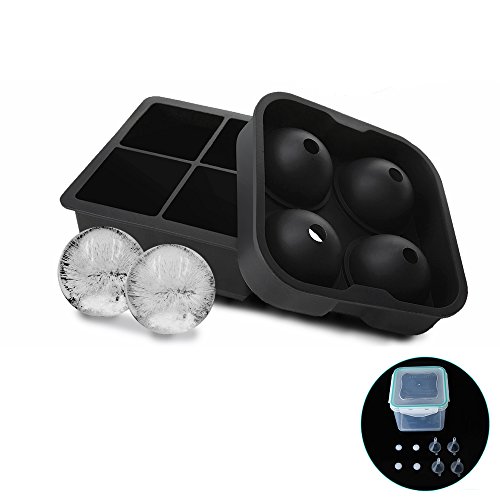 KELLM BPA free flexible Ice Ball Maker and Rubber Sphere Tray Mold Large Whiskey Ice Cube Trays Combo (set of 2)