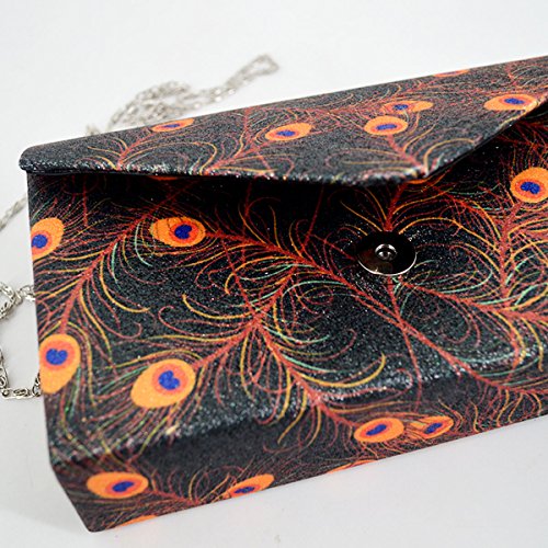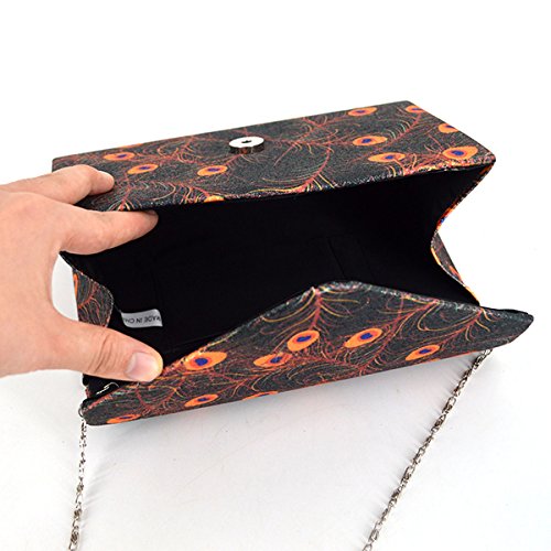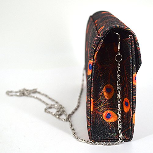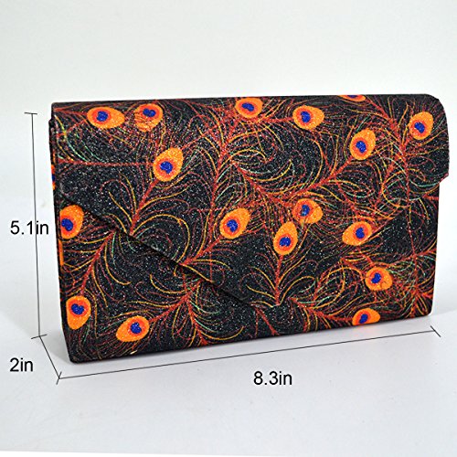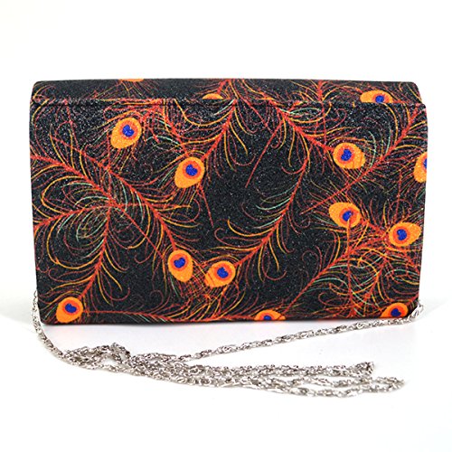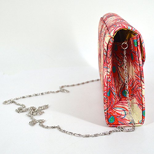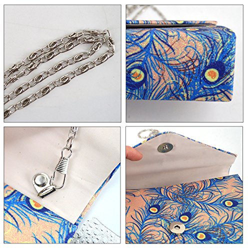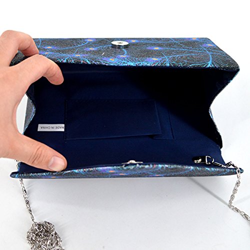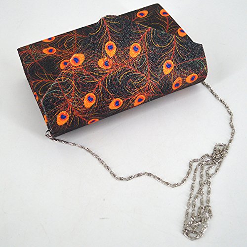 Made of high quality glitter silk stain; glitter and glossy to look, very comfortable and durable to use. Floral print and glitter fabric look so shiny and fashionable, dress up you charming and outstanding in the crowd. Long chain strap adds beauty and also provides convenience to carry. Product size: 8.3 * 2 * 5.1in. Small but exquisite, can easily fit your cell phone,sunglasses, car keys, mirror, lipstick and other small things. Great gifts for women. Perfect for evening, party, wedding and bridal.