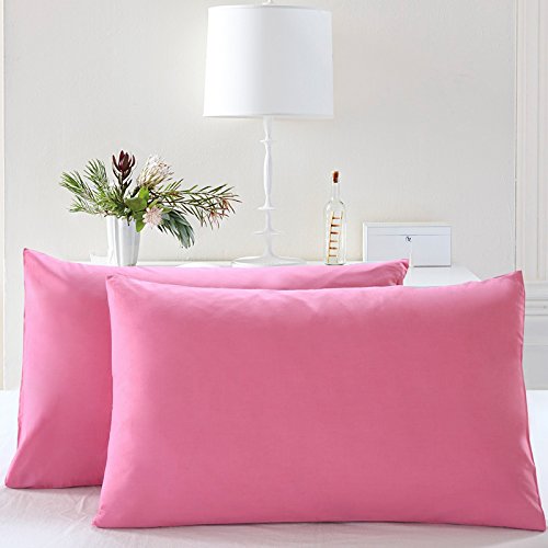 PillowCases Queen Size 2 Pack 100% Cotton Sateen for Maximum Softness and Easy Care, Elegant Double-Stitched Tailoring 20" X 30"-Pink