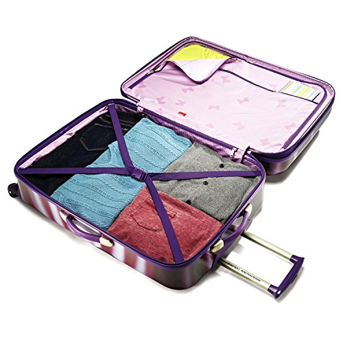 Split construction with large mesh pocket on interior panel and cross straps with fun printed lining. Disney and American tourister co-branded