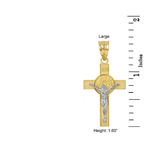 -. Binding : Jewelry -. Brand : Saint Collection -. Department : womens -. Feature : cross-style, Catholic St Benedict crucifix religious protection charm necklace / faithfully handcrafted with solid 14 karat 2-tone white gold and yellow gold in perfect combination finish / comes with free special gift packaging / made in the USA yet offered at factory direct jewelry P.R.Ice / ships from the manufacturer directly to the customers -. Label : Claddagh Gold -. Manufacturer : Claddagh Gold -. Model : CM1676TT -. MPN : CM1676TT -. PartNumber : CM1676TT -. ProductGroup : Jewelry -. ProductTypeName : FASHIONNECKLACEBRACELETANKLET -. Publisher : Claddagh Gold -. Studio : Claddagh Gold -. Title : Solid 14k Two-Tone Gold St. Benedict Crucifix Cross Pendant Necklace (1.60")
