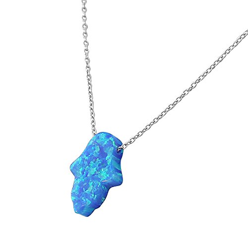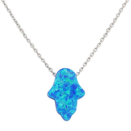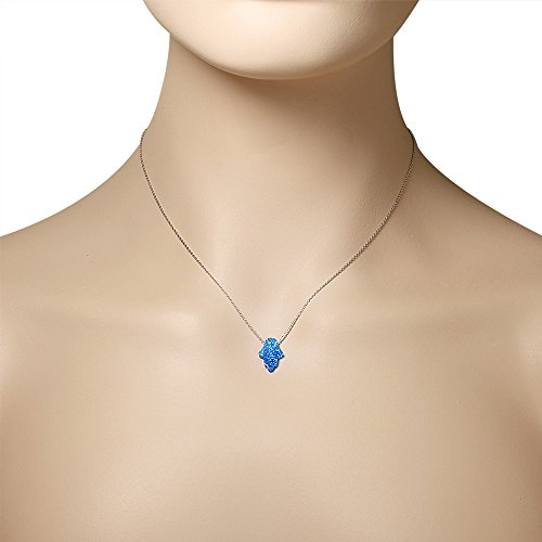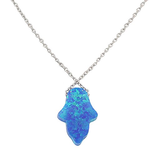 -. Title : 925 Sterling Silver Womens Evil Eye Hamsa Blue Turquoise-Tone Loose Simulated Opal Pendant Necklace
