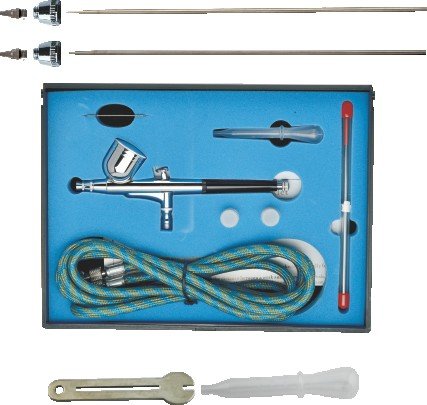 HUBEST Professional 0.2mm\0.3mm\0.5mm Dual action AirBrush Spray Paint Gun Kit Complete Set with hose, nozzle, needle for Makeup, tattoo, hobby