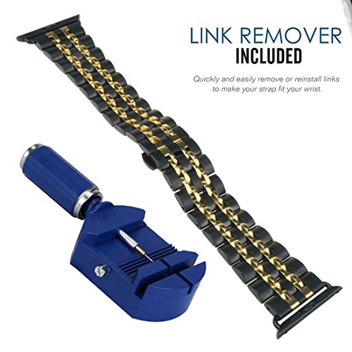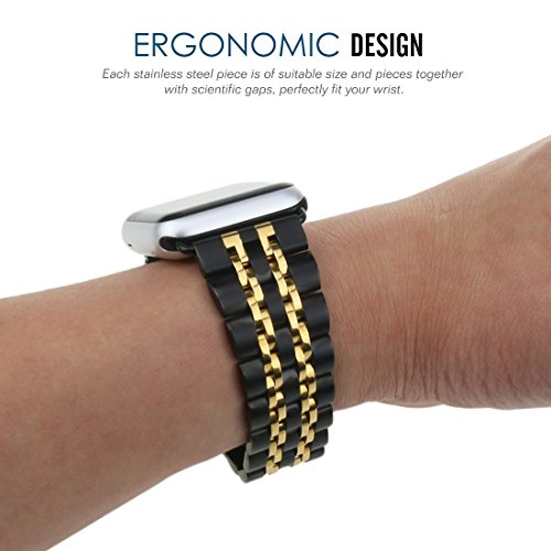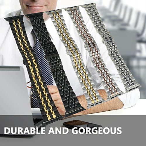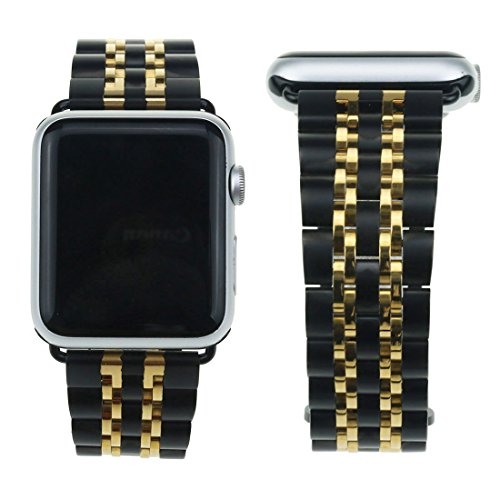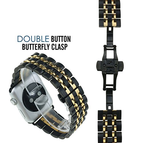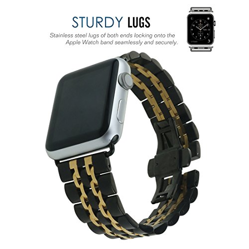 CHC Apple Watch Band 42mm Solid Stainless Steel Metal Bracelet Strap Replacement with Butterfly Buckle for Apple Watch Series 1 Series 2 (7 Links, Black/Gold 42mm)