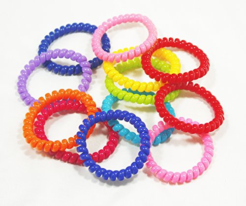 12 Pcs Assorted Color Thin Solid-3 Square Rubber Swirl Hair Ties with round edges Measuring 2 in outside diameter Stretchable