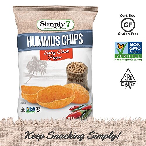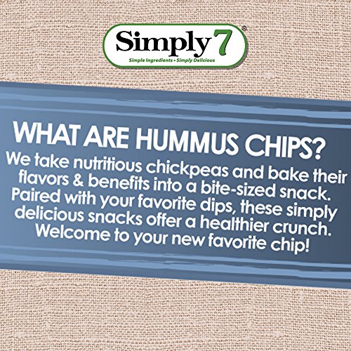 -. Feature : Five-Ounce bags of simply seven hummus chips / Choose between three unique flavors: sea salt, tomato basil, or spicy chili pepper / Made from real chickpea flour--a natural source of protein and iron / No trans fat, artificial colors or flavors, preservatives, or gluten / All natural ingredients; vegetarian