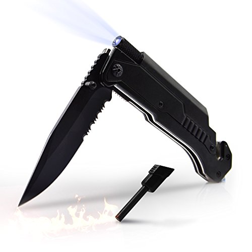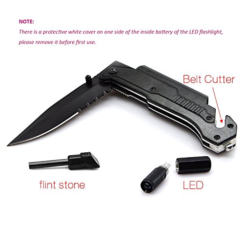 - Multifunctional design with a Sharp Blade, Magnetic Removable Bright LED Light, Magnesium Fire Starter, Emergency Glass Window Punch Breaker, Sharp Seatbelt Cutter. NOTE - Please remove the protective insulation (a piece of plastic) from the inside battery of flashlight before first use.