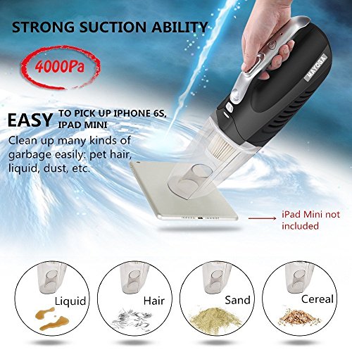 1. 120W strong powerful suction, easy for cleaning car dust, liquid, pet hair, etc.