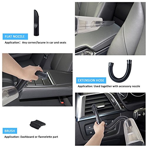 2. 4.5m long cable and various suction accessories help you reach to the far back of car trunk.