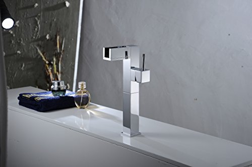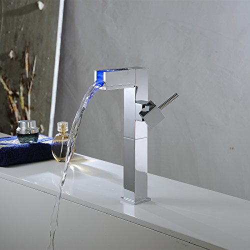-. Title : Aquafaucet LED RGB 3 Color Waterfall Bathroom Sink Faucet Single Handle Basin Mixer Tap Lavatory Faucet No Battery Needed Water Power Tall body