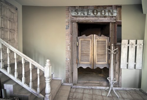 JP London WE5A063 8.5-Feet by 6-Feet wide Racoon Jack's Old Wild West Saloon Door Removable Wall Mural
