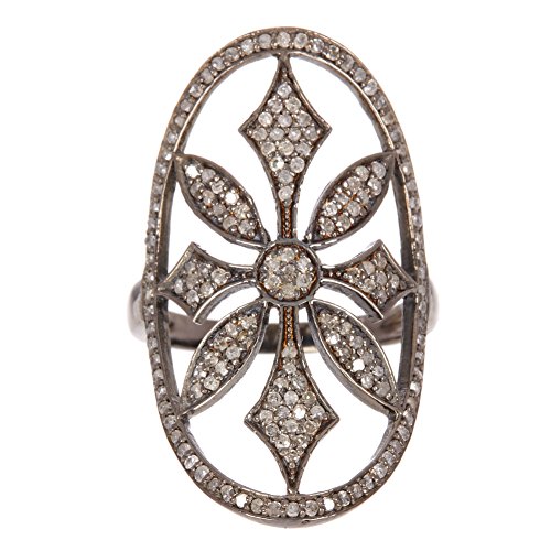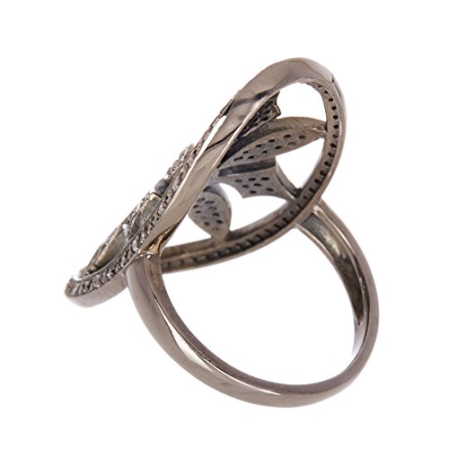 -. Feature : Open shield design ring set in black rhodium plated sterling silver / Featuring 1.3 carats of champagne diamonds / 1.5 inches tall
