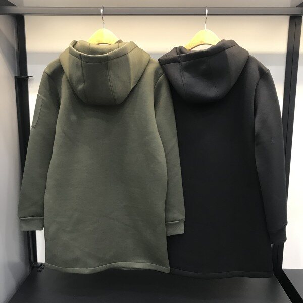 남여공용 네오플랜 롱 후드집업입니다.심플한 디자인에 어깨라인에 지퍼로 포인트가 들어가 있고,부드러운 소재로 착용감 또한 좋은 상품입니다^^
