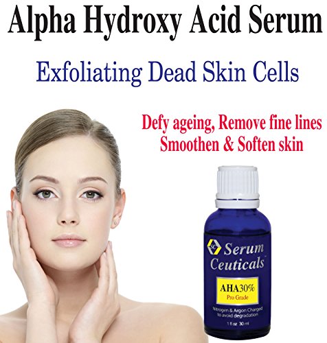 Glycolic Acid (AHA) 30% Serum helps 1. remove dead skin cells, 2. regenerate healthy skin, 3. lighten the skin tone, 3. reduce/remove age spots (Hyperpigmentation), 4. remove fine lines, 5. reduce deep wrinkles, 6. open clogged pores and reduce enlarged pores, 7. treat acne, 8. increased collagen and elastin growth (skin barrier repair), 9. treat effectively stretch marks, 10.improve texture and clarity of skin.