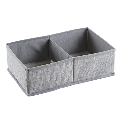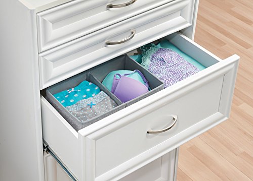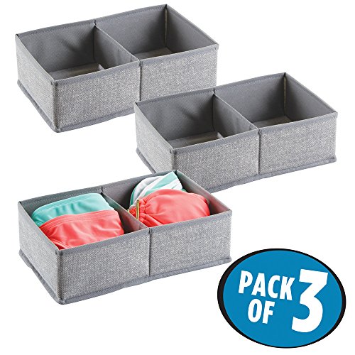 mDesign Fabric Dresser Drawer and Closet Storage Organizer for Underwear, Socks, Bras, Tights, Leggings - Pack of 3, 2 Compartments, Gray
