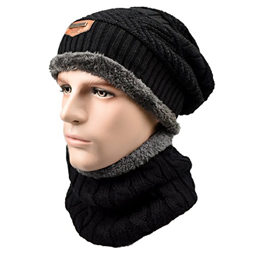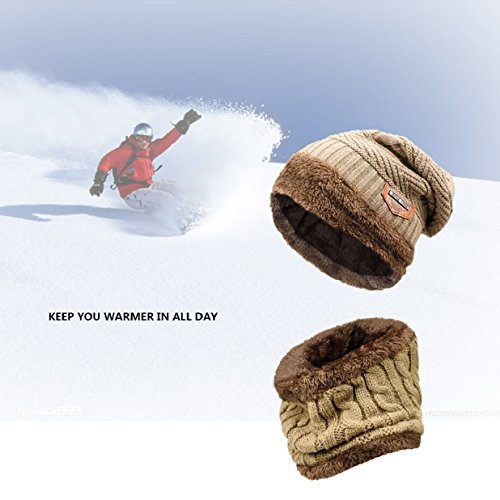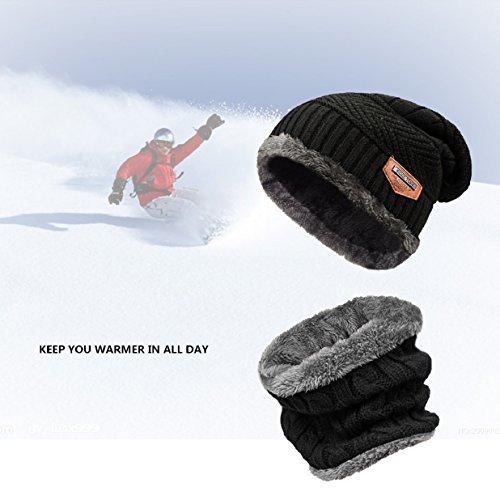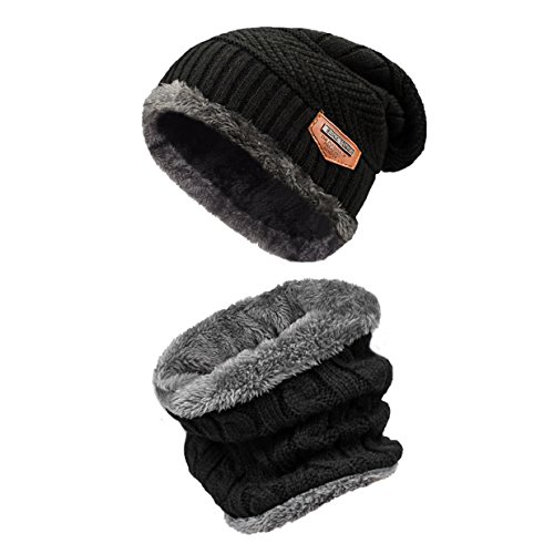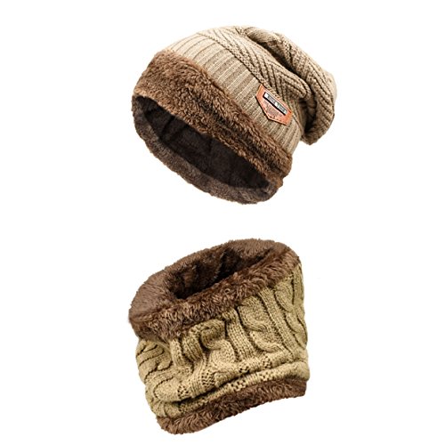 Heekpek Unisex Damen Herren Kinder Wintermutze Winterschal Beanie Strickmutze Mutze mit Fleecefutter