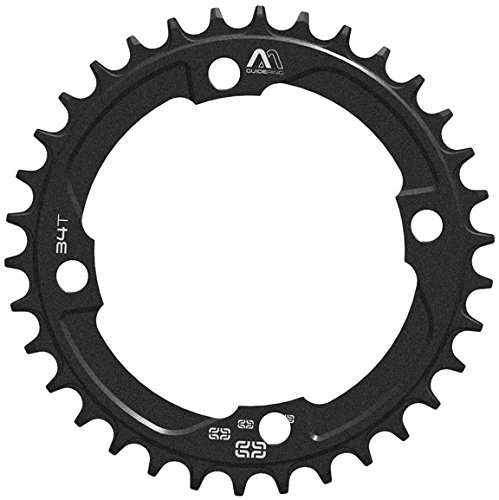 Studio : e*thirteen by The Hive Publisher : e*thirteen by The Hive Binding : Misc. Product Description e*thirteen by The Hive M Profile Guide Ring Chainrings Optimized dual width tooth profiles and chamfers provide greater chain retention than standard ringsExhaustive testing has yielded a long-wearing shape and finish to make sure your chain stays put even after months of use104bcd rings feature a flip-flop design that allows for a 49mm or 50mm chainline (30t rings use a fixed 47.5mm chainline) Item SpecificationsColorBlackMaterialAluminumTeeth34Chainring BCD104Chain CompatibilityShimano 10Chain CompatibilityShimano 11Chain CompatibilitySRAM 10Chain CompatibilitySRAM 11Chain CompatibilitySRAM XX1Defined ColorBlackRing Position/TYPEChain Retaining Single Ring 0