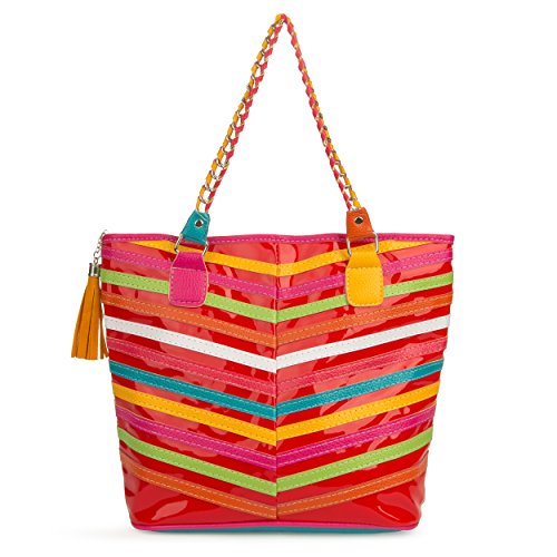 Vangoddy Women Colorful Patent Leather Top Handle Satchel Handbags Tote Purse
