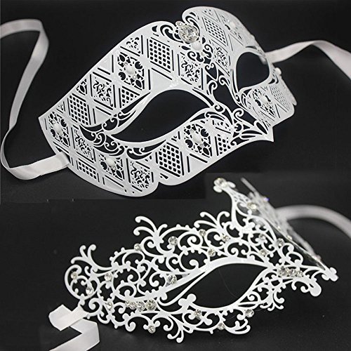 -. Title : GOODKSSOP Men Women Couple Elegant Light Metal Venetian Phantom Laser Cut Filigree Masquerade Ball Prom Halloween Party Face Mask Set