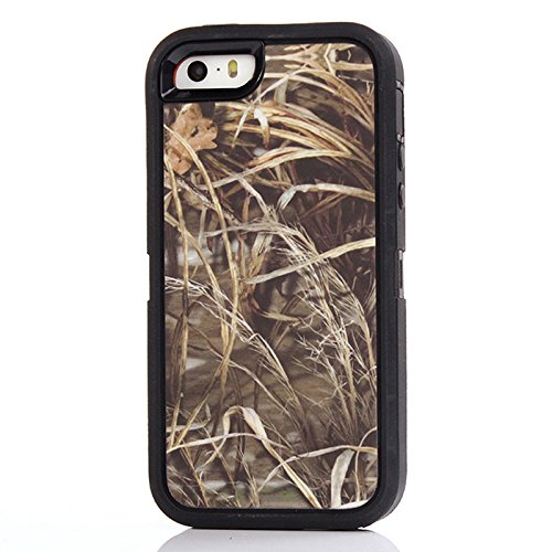 iPhone 5s/5SE ,Vodico® Hunting Wild Camo Heavy Shockproof Dustproof Drop Scratch Resistant Full Body Protective Case with Belt Clip Holster and Built-in Screen Protective for iphone 5s/5 - Grass Black