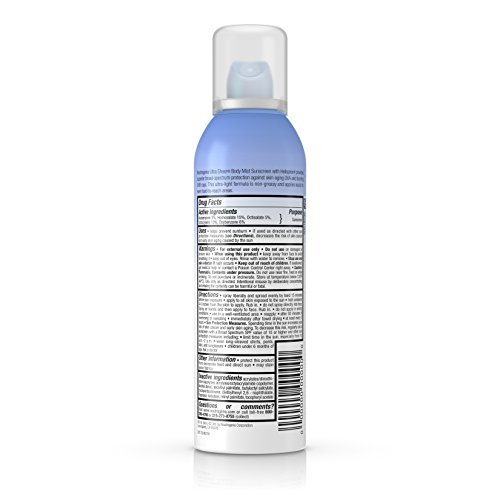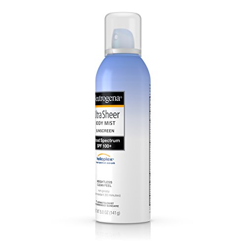 Help protect your skin with Neutrogena Ultra Sheer Body Mist Sunscreen with Broad Spectrum SPF 100+. This weightless, sheer mist applies easily, even to hard-to-reach areas, and its one-touch continuous spray works at any angle. The mist is formulated with clinically-proven Helioplex, an advanced sunscreen technology with superior broad-spectrum protection from skin-aging UVA rays and skin-burning UVB rays. This sunscreen is water-resistant up to 80 minutes. It is from a dermatologist-recommended brand, oil-free, non-comedogenic, and PABA-free.Feature