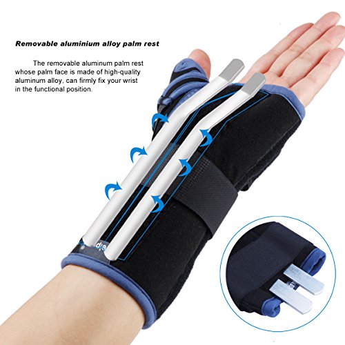 - BREATHTAKING DESIGN & PERFECT FIT:Palmar stay (palm-side of the hand) aluminum alloy brace and radial stay (thumb) Plastic splint are completely mold opened and produced specially according to the human body curve construction of Wrist. Ensure the wearing comfort and lightness.Customize the level of compression needed using the 4 adjustable Velcro straps, allowing this wrist support to be used day and night.