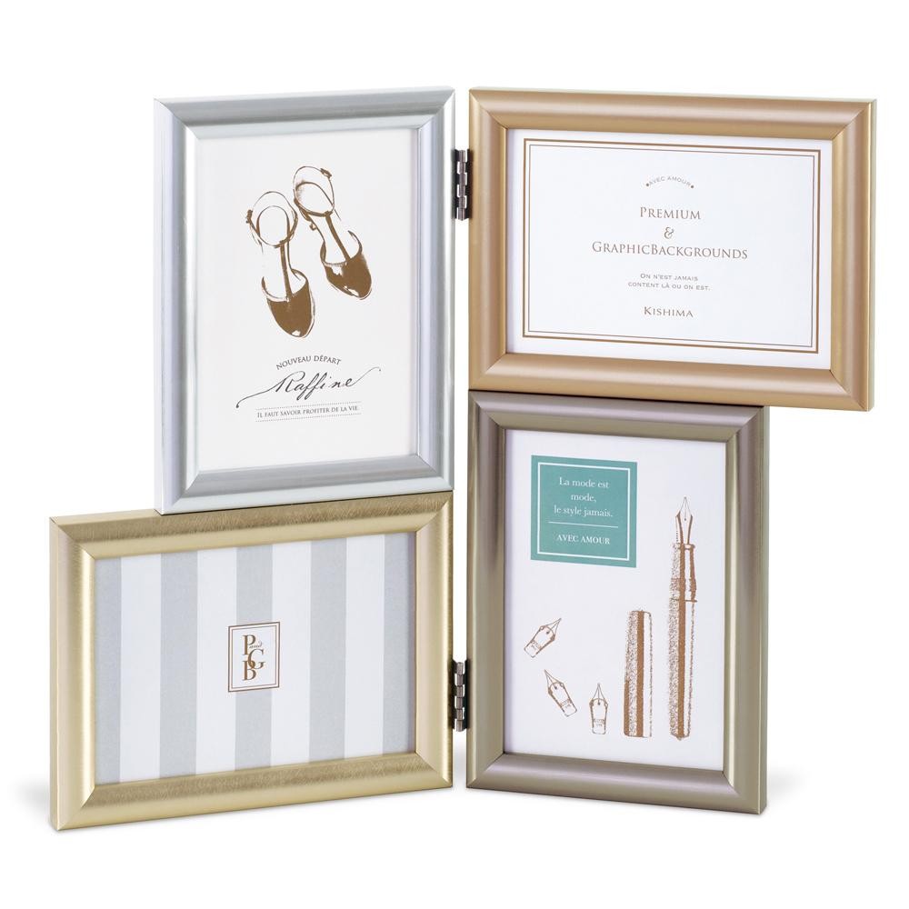 | 仕様 | 内寸:W91×H129mm(2個)、W129×H91mm(2個) 窓寸:W85×H122mm(2個)、W122×H85mm(2個) 対応写真サイズ:L判(89×127mm)×4枚 裏板のカラー:ブラック 設置方法:卓上・壁掛両用(壁掛時のみ縦横両用) |