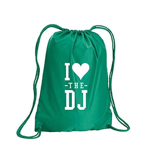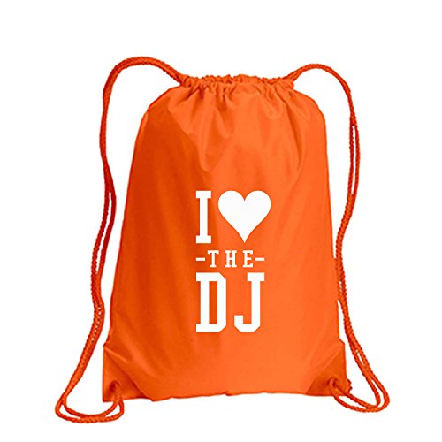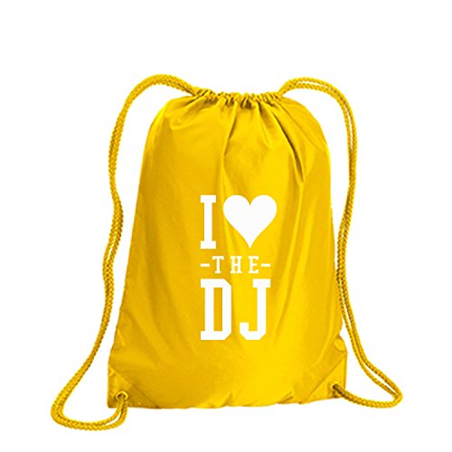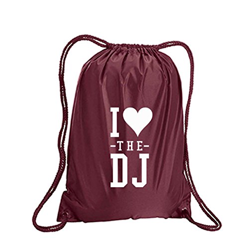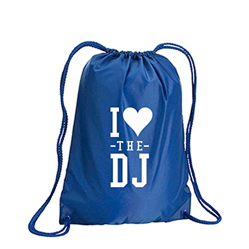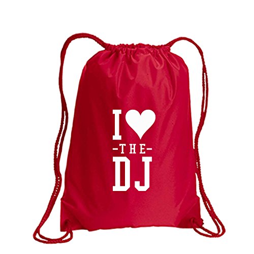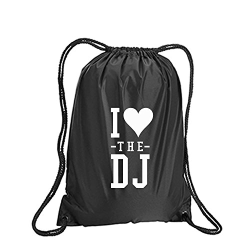 Product Description This durable and stylish nylon tote features "I love the DJ" on a cinch pack tote with white ink. Bag comes in small and large sizes and is made of a durable 210 Denier nylon and has color-matched draw cords. Printed in the USA on an imported bag. 0
